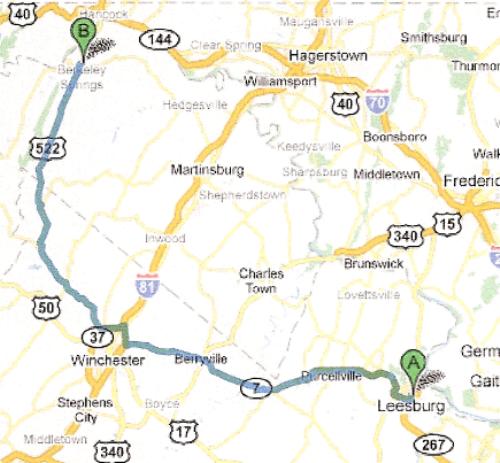 (Warning: Do not speed anywhere around Berkeley Springs. 25 means 25, not 26.)